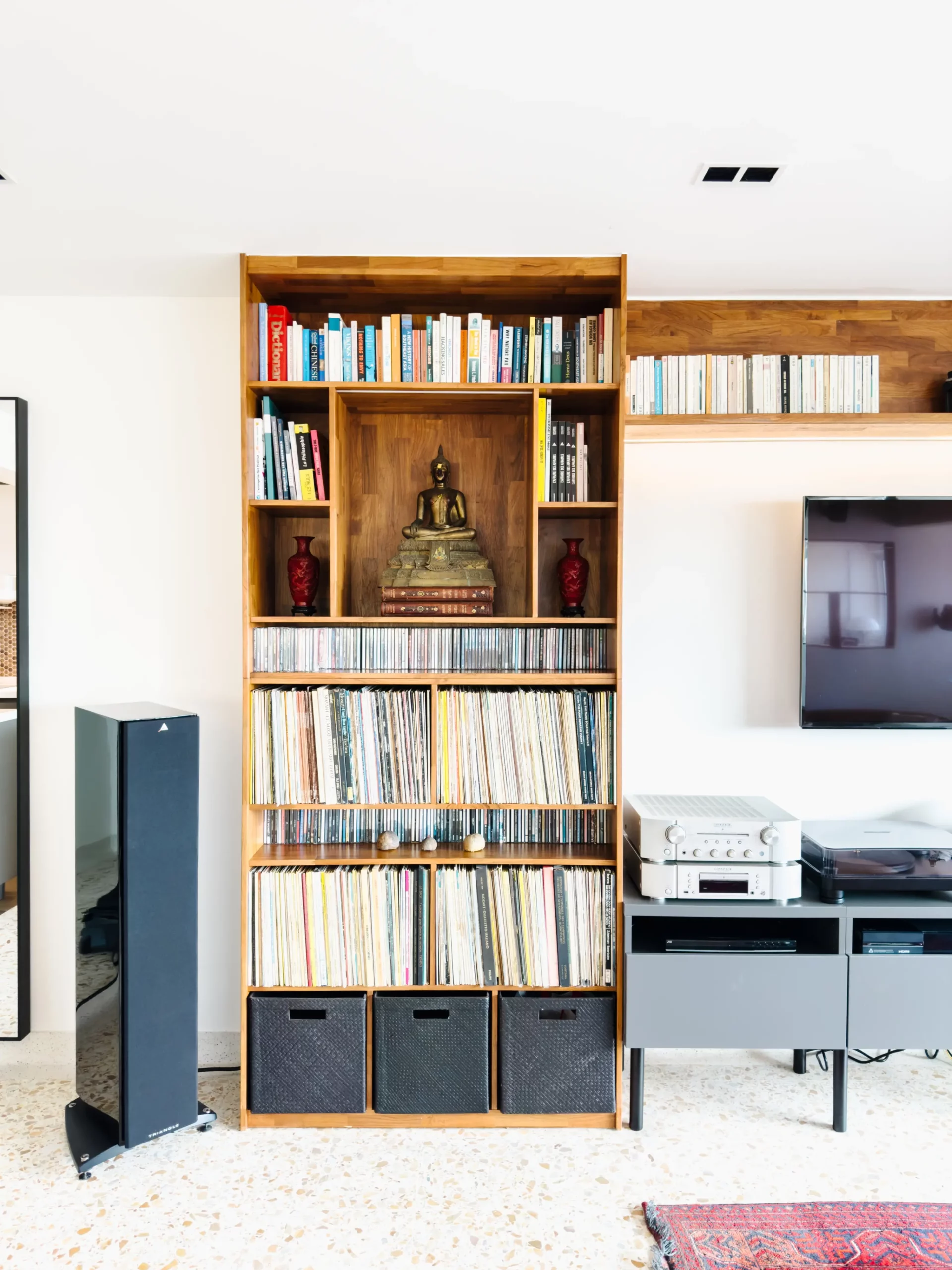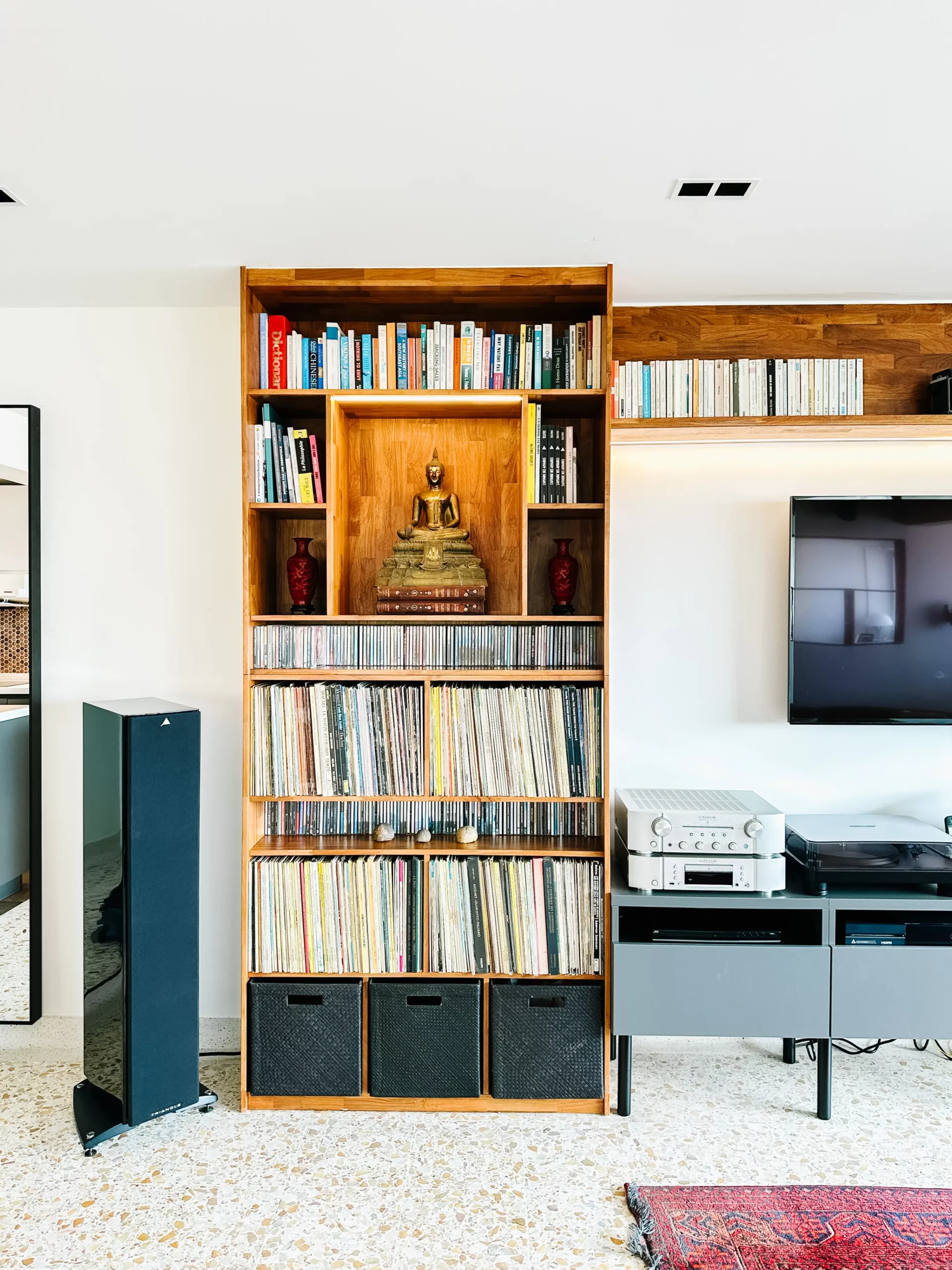 Teakwood Display Elegance: Elevate your living space with our Teakwood Display Shelf and TV Entertainment Centre. Uniting form and function, this elegant duo seamlessly blends aesthetic appeal with practical storage.