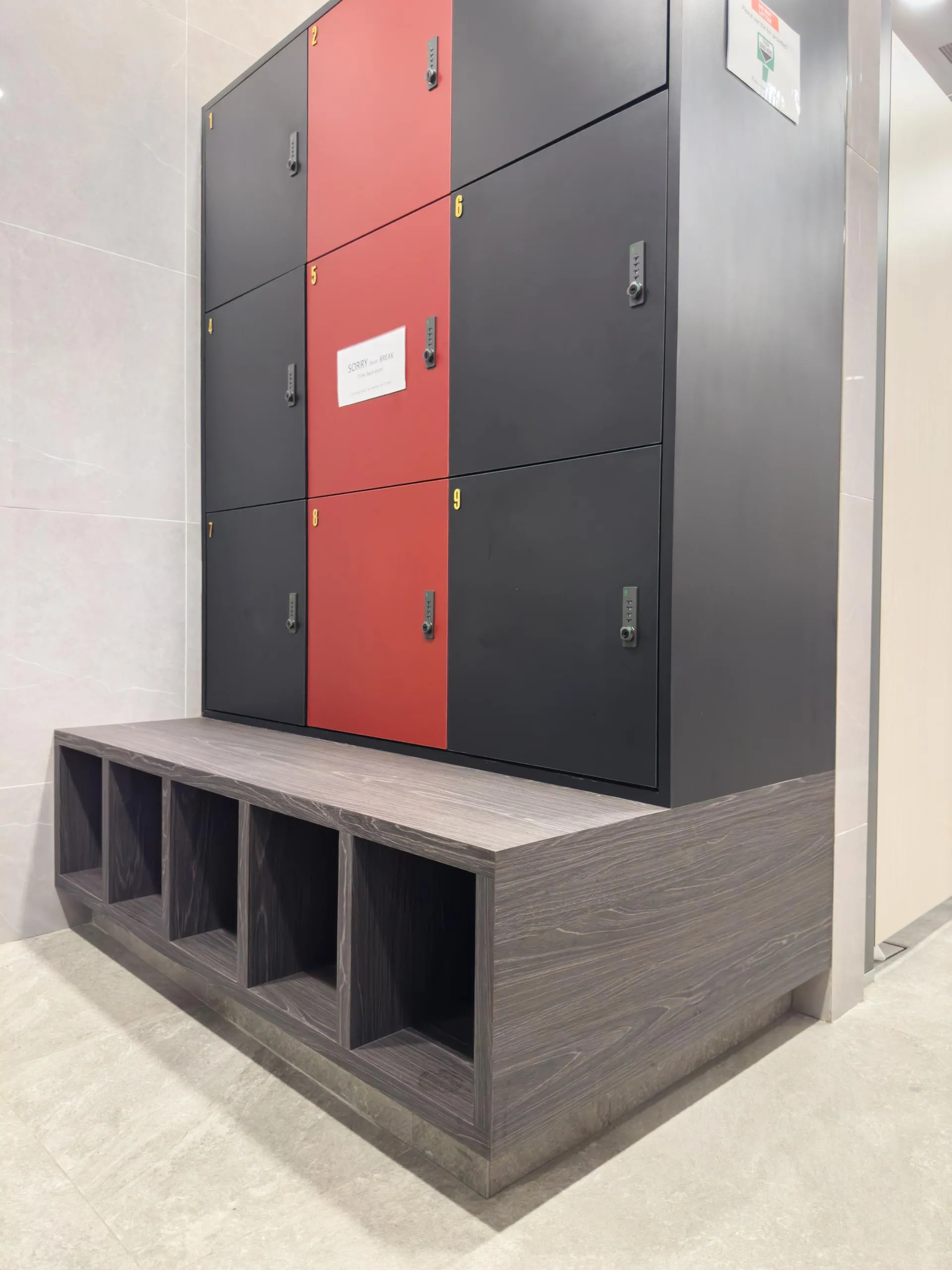 At Max Out Fitness, we’ve combined functionality with health-forward design through the use of E0 plywood, known for its low formaldehyde emissions. Our custom locker cabinets, vanity, and cashier counter not only offer durability but also contribute to a healthier indoor environment. The standout feature is the branded LED mirror, proudly displaying the gym’s slogan, reinforcing both the brand identity and a commitment to well-being. This project merges sustainable materials with sleek design, supporting a fitness space that values both performance and health.