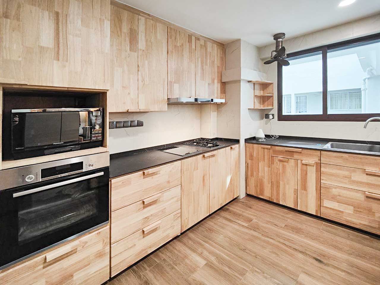Elevate kitchen design with sustainable and warm rubberwood carpentry, harmonizing form and function for heartwarming culinary spaces.